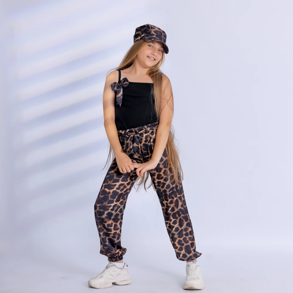 “Add a touch of wild elegance to your child’s٠wardrobe with the dream outfit! Satin tiger-print pants that reflect the spirit of adventure with every step, a soft cotton top in vibrant colors that adds comfort and style to every move, and a trendy cap that completes the look with unique flair. Make every day an adventure filled with color and style, where comfort meets beauty in one design!”