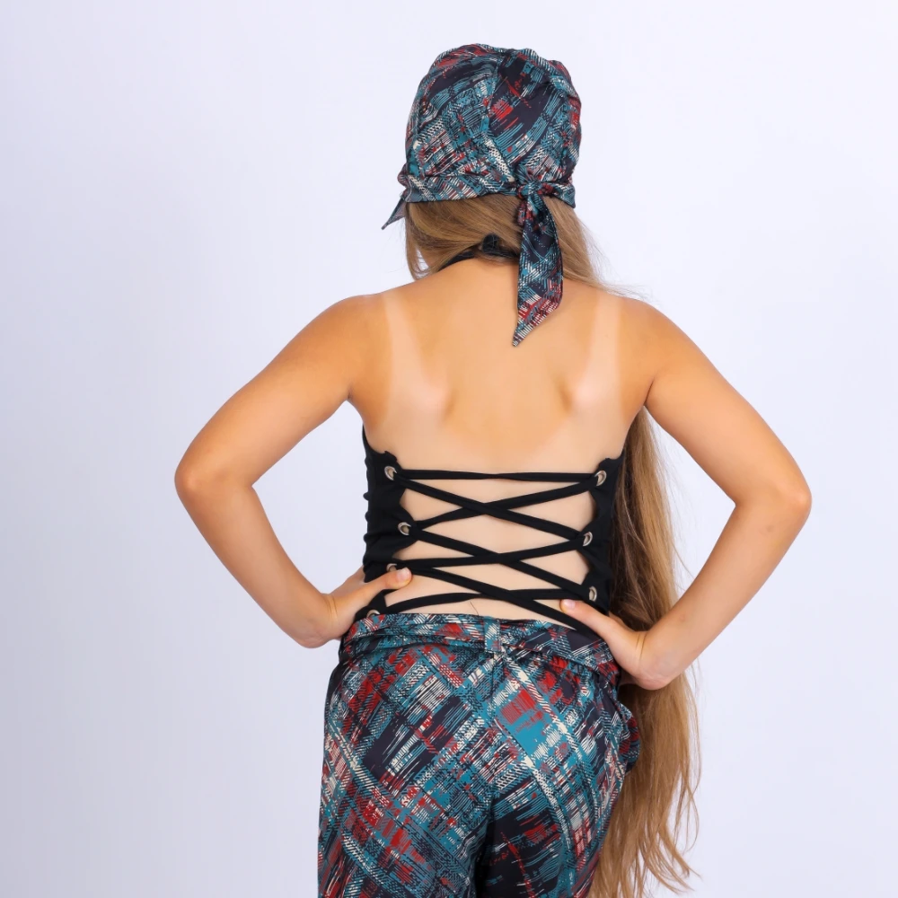دع طفلك يتألق بأناقة مع بنطال الساتان الناعم الذي يوفر لمسة نهائية أنيقة ولامعة لإطلالة فاخرة ومريحة، مقترنًا بجزء علوي من القطن الفاخر يتميز بتصميم متقاطع عصري يضيف لمسة فريدة وساحرة.