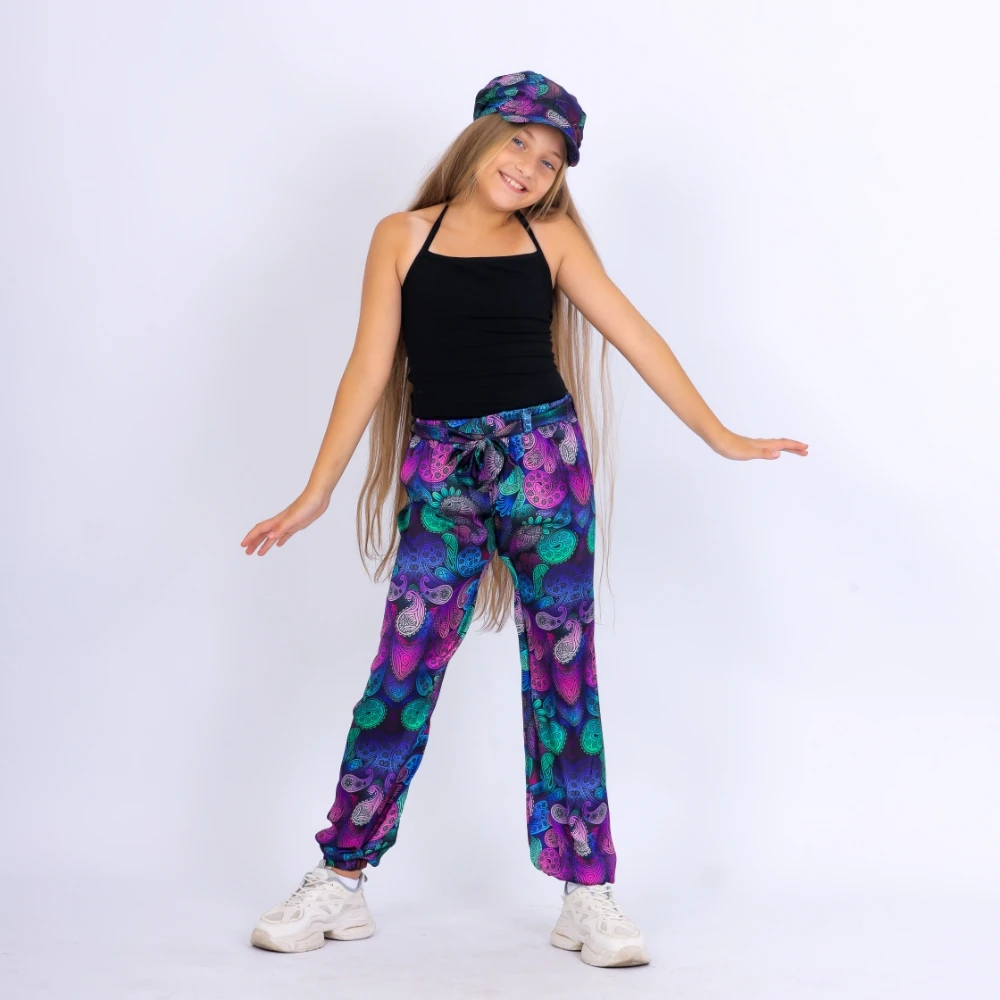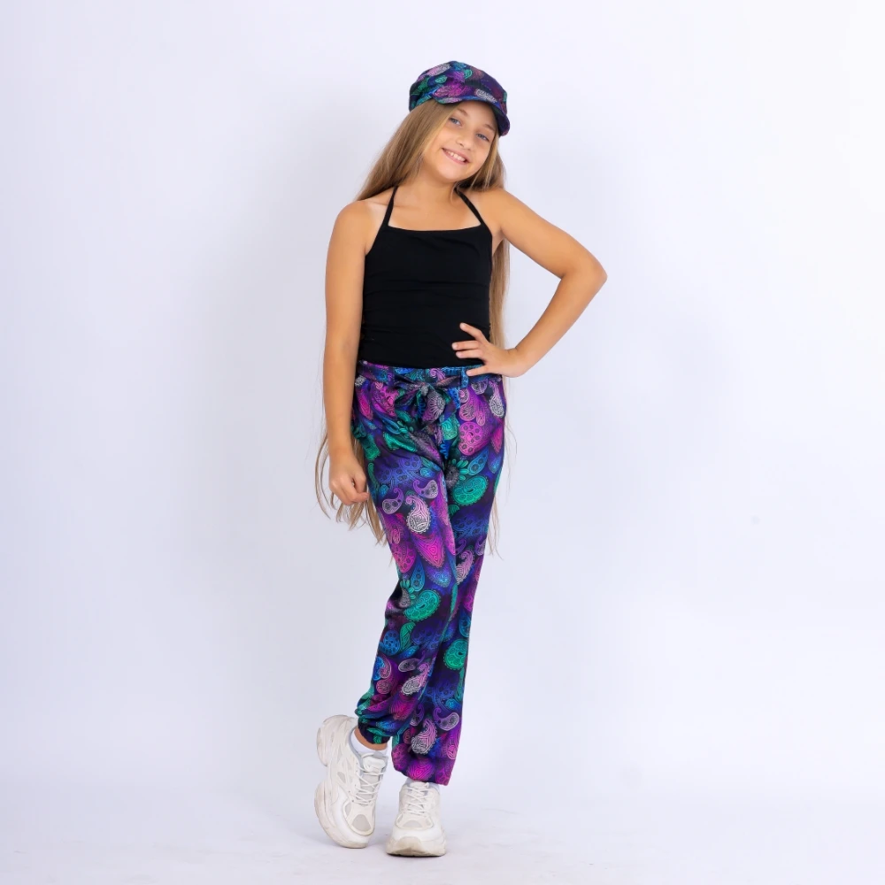 This unique children's outfit combines Armani satin pants in attractive colors with a soft cotton top. The luxurious satin pants offer unparalleled elegance and comfort throughout the day, while the cotton top adds a touch of softness and simple elegance. Whether for family outings, special occasions, or everyday wear, this outfit provides a stylish and contemporary look for your kids that reflects their beauty and innocence. Dress your child in this ensemble for a complete look that blends luxury and comfort.